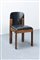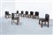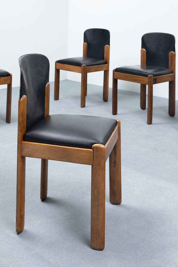 Otto sedie in legno di noce con sedute imbottite rivestite in pelle.