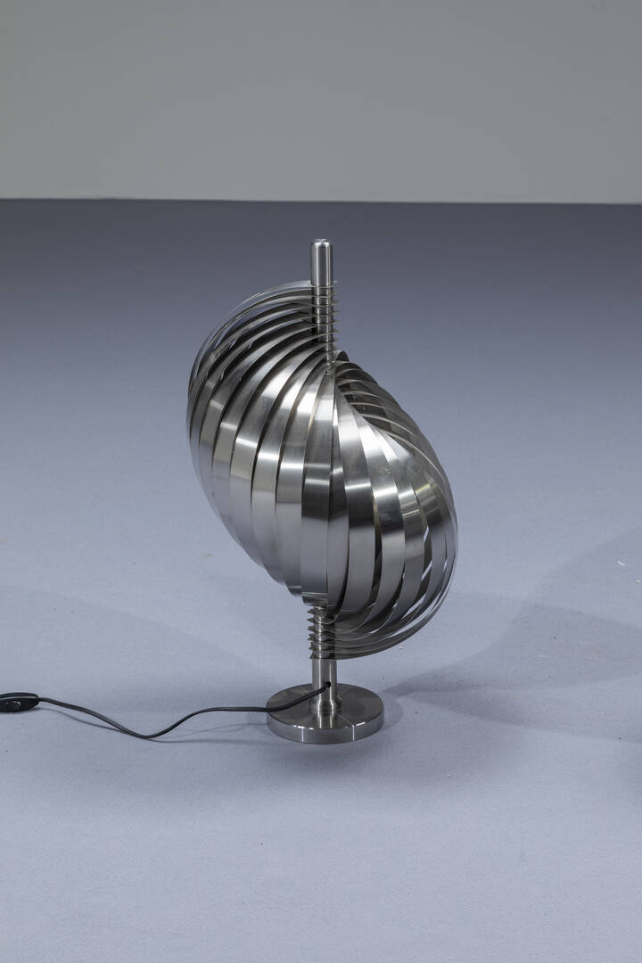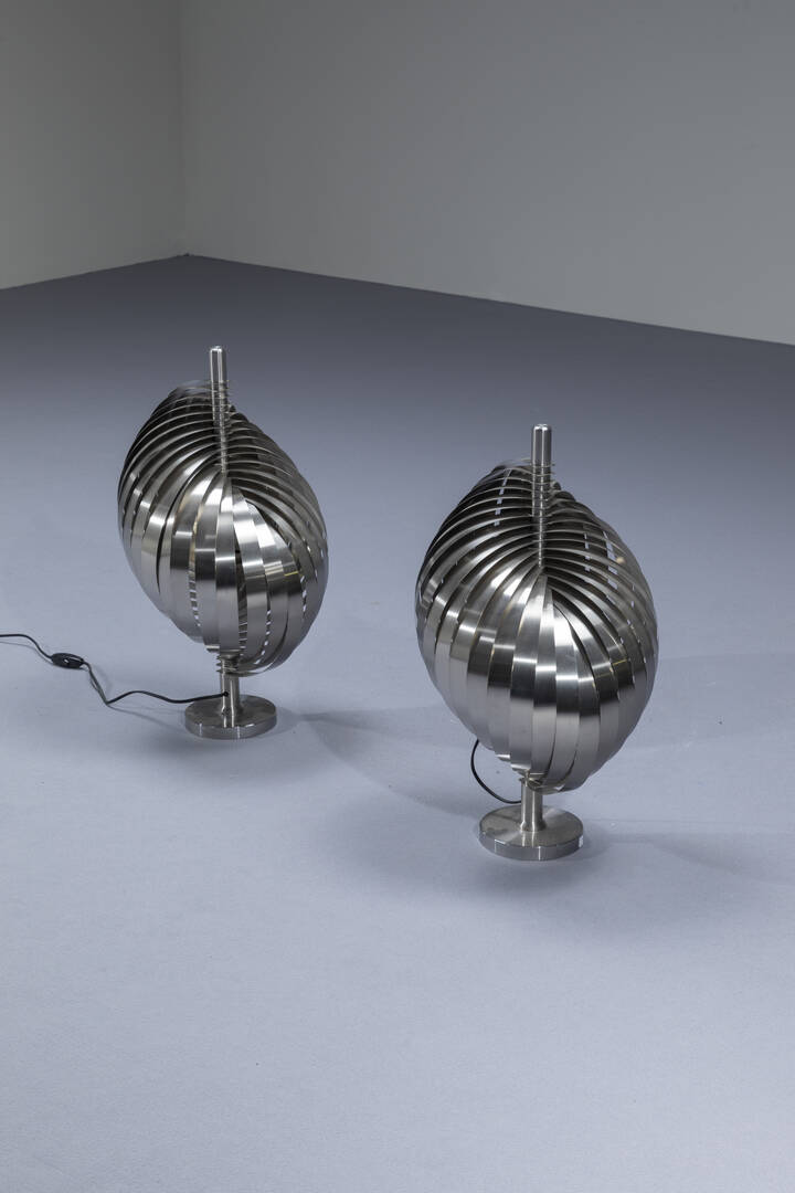 Coppia di lampade da tavolo in alluminio spazzolato.