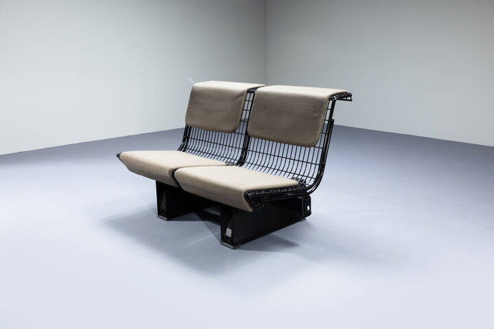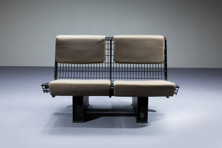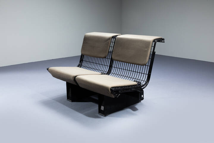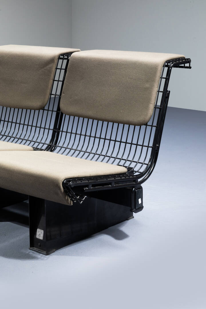 Panchetta in metallo verniciato, cucini imbottiti rivestiti in tessuto.