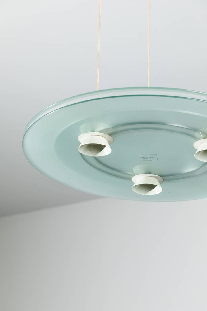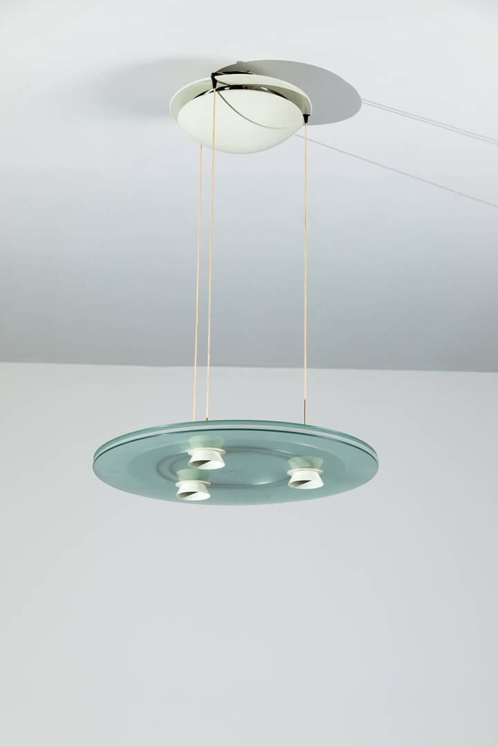 Lamapada a luce diretta e indiretta, diffusori in vetro con interposto disco in metacrilato.