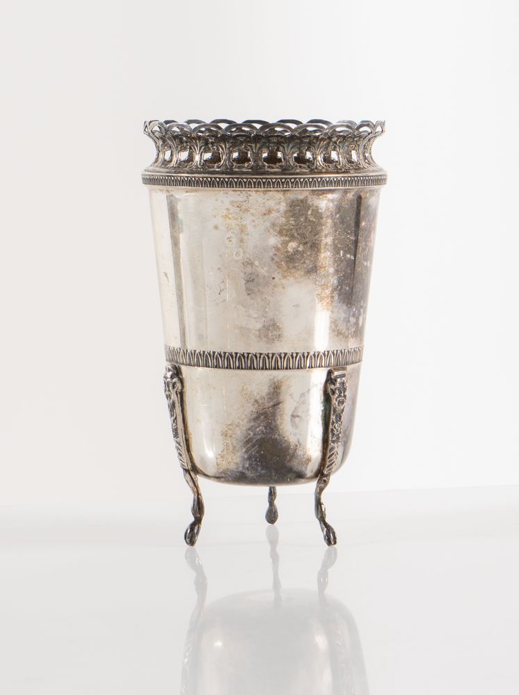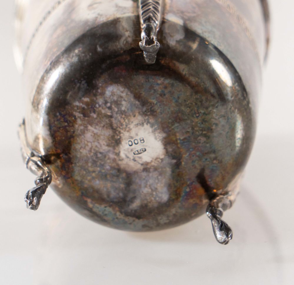 VASSALLO LUIGI di Baldassare, Milano, prima metà del XX secolo. Vaso in argento 800. Sotto la base reca punzoni: 800 e losanga locativa 475MI. Cm 14,5xdiametro 8,5. Peso: 168 gr.
