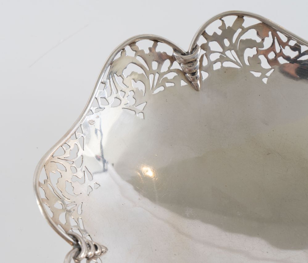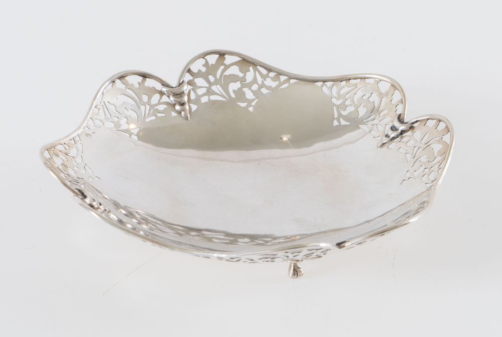 Italia, 1935 - 1944. Svuotatasche in argento 800 a forma di quadrifoglio. Sul bordo superiore reca punzoni: 800 e losanga locativa non identificata con fascio littorio. Cm 4x19,5x19,5. Peso: 262 gr.