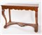 Grande consolle lastronata in noce con bordature in radica. Emilia, primo quarto del XIX secolo. Sostegni di forma sagomata impreziositi da motivi a fascia e base polilobata. Cm 98,5x138x61,5. (piccole mancanze)