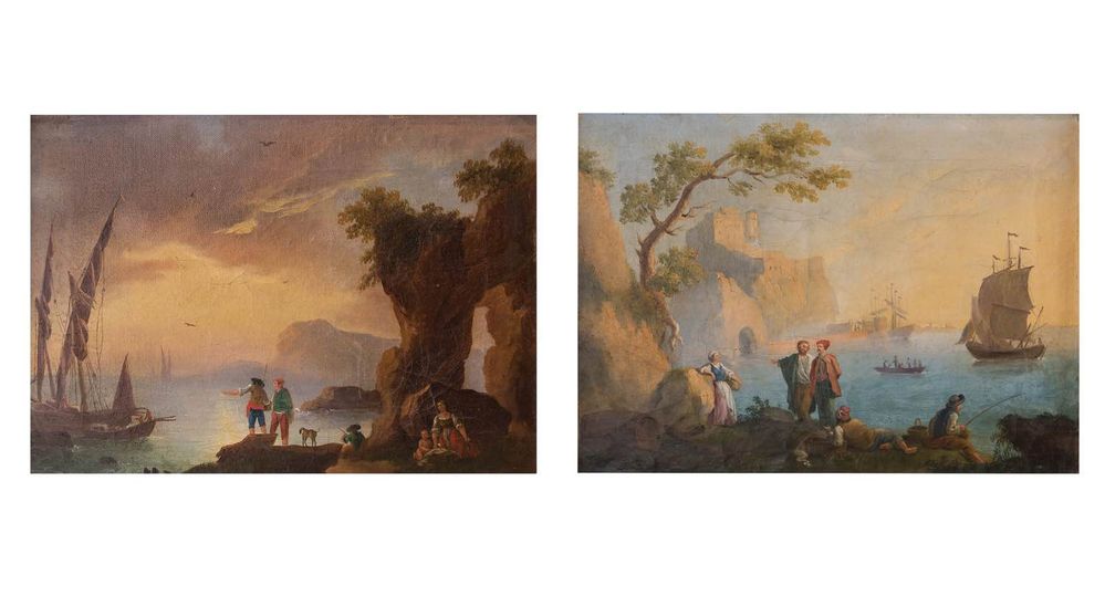 Maestro degli inizi del XIX secolo. Coppia di marine. Olio su tela. Cadauno...