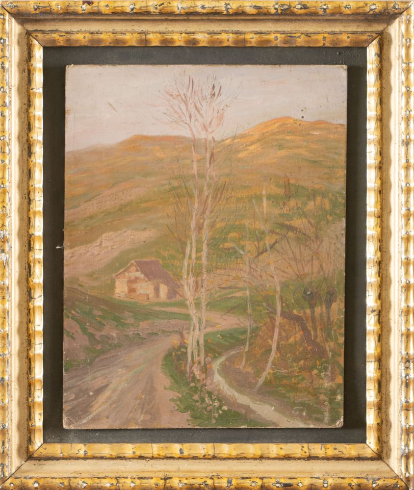 GIOVANNI SECCHI (Bologna 1876 - Darfo 1950) "Paesaggio". Olio su cartone. Cm 27x21. Al retro opera firmata Secchi.