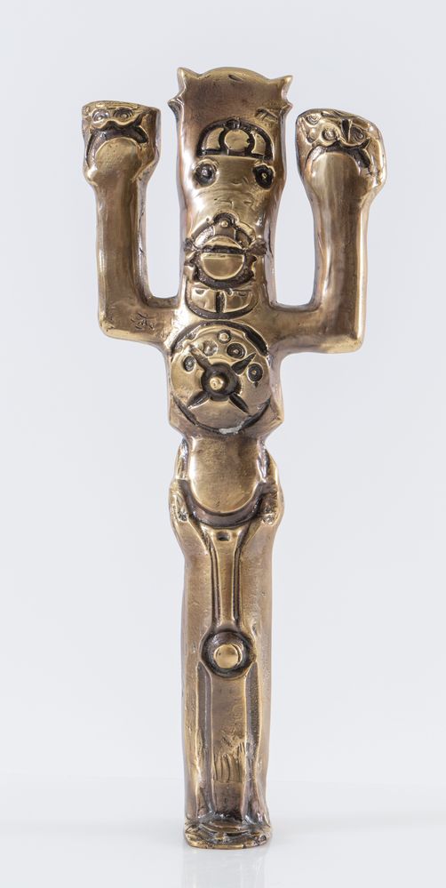 ROBERTO SEBASTIAN MATTA ECHAURREN (Santiago del Cile 1911- Civitavecchia 2002) "Totem". Scultura in bronzo dorato. Cm 50x20x9. Opera firmata in alto a sinistra. Alla base reca numeri di tiratura 5/10.