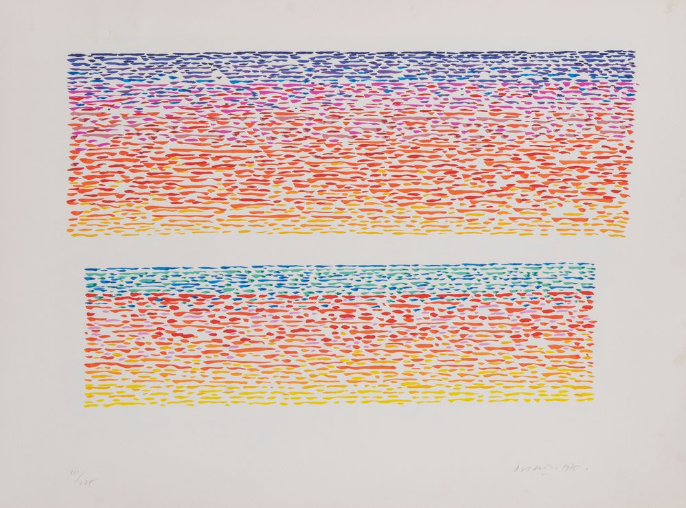 PIERO DORAZIO (Roma 1927 - Perugia 2005) "Senza titolo", 1975. Serigrafia a colori su carta. Cm 50x70. Opera firmata e datata in basso a destra Dorazio 1975. Reca numeri di tiratura in basso a sinistra 111/125. Edizione Box Macerata.