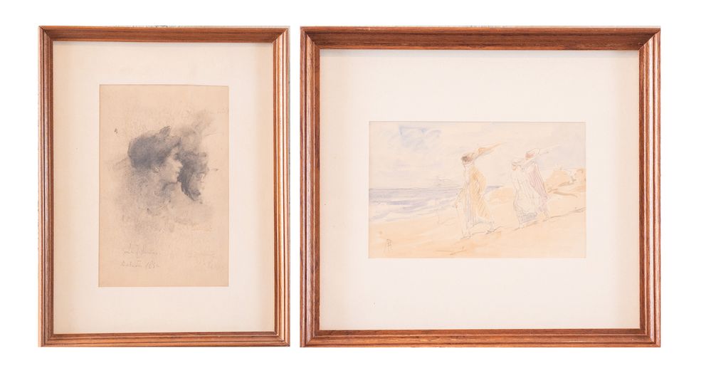 POMPEO MARIANI (Monza 1857 - Bordighera 1927) Coppia di disegni....