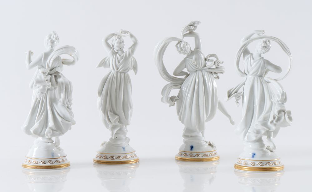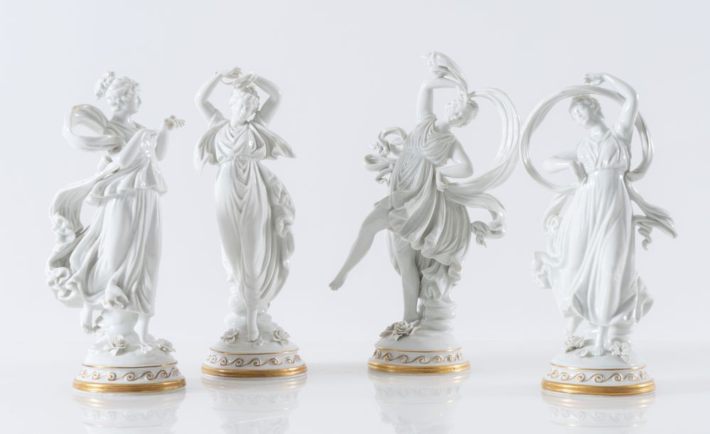 Quattro danzatrici in porcellana bianca con decorazioni in oro. Anni '50 del...