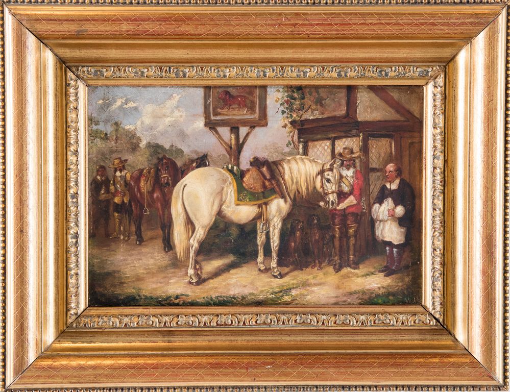 Maestro del XIX secolo. “Esterno di taverna”. Olio su tela. Cm 20,5x30,5....