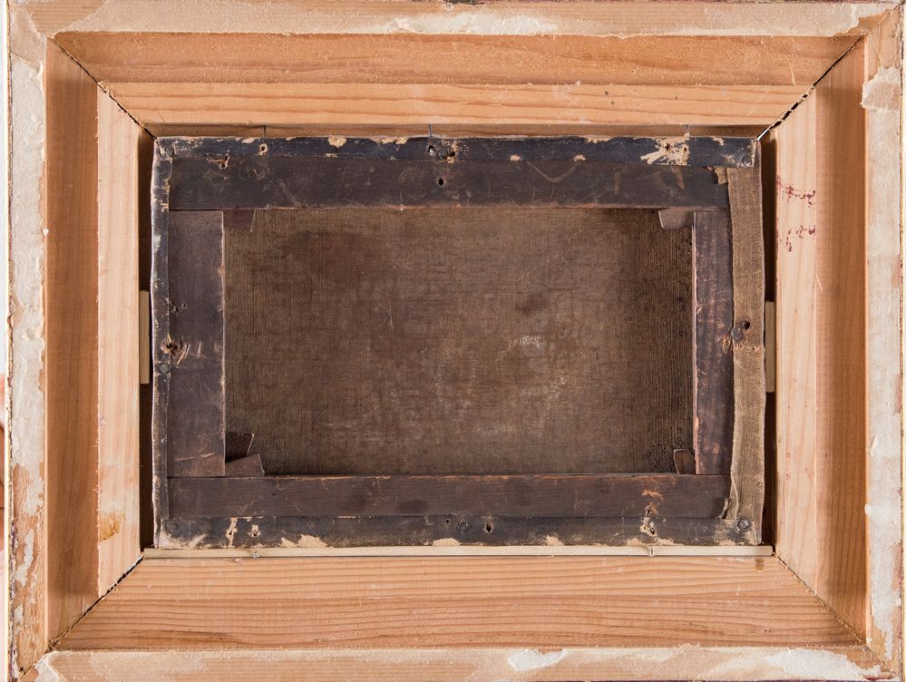 Maestro del XIX secolo. “Esterno di taverna”. Olio su tela. Cm 20,5x30,5. Opera siglata in basso a destra WDR.