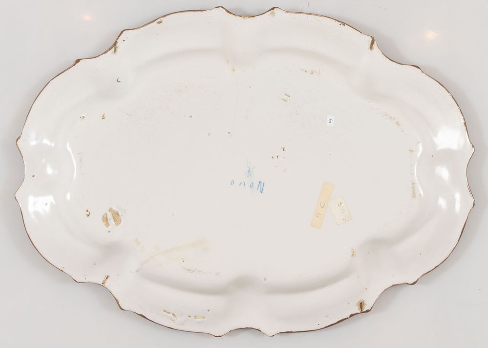 MANIFATTURA NOVE DI BASSANO Vassoio in ceramica con decoro di frutta e fiori. Metà del XIX secolo. Alla base reca marchio Nove e stella. Dimensioni cm 34,5x49. (buono stato di conservazione)