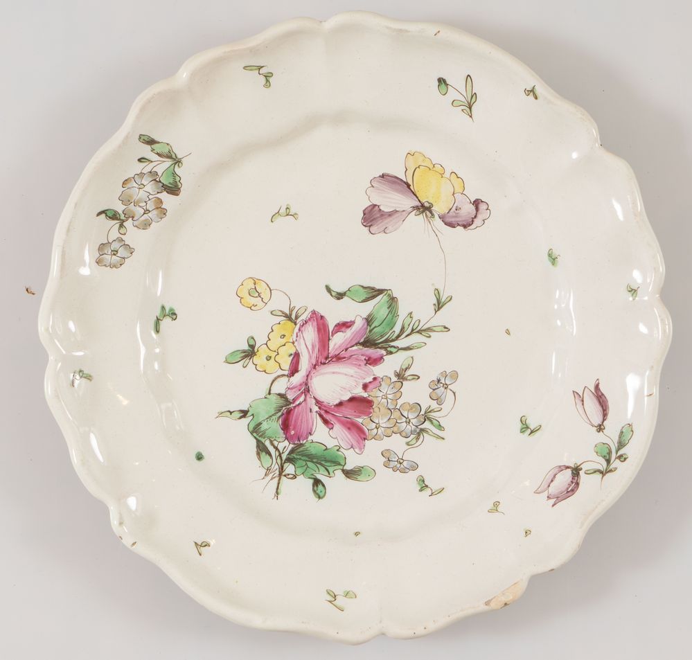 BOTTEGA MILANESE Piatto in maiolica policroma a piccolo. Seconda metà del XVIII secolo. Diametro cm 24. (buono stato di conservazione: sbeccature al bordo)