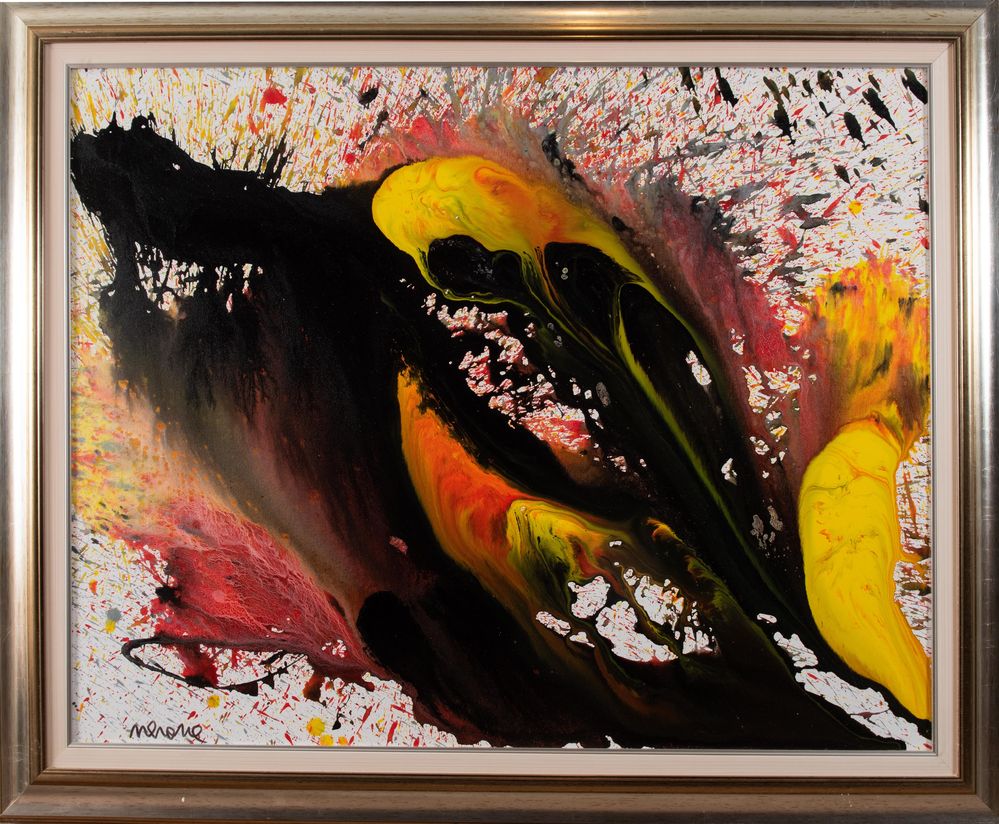 SERGIO TERZI NERONE (Reggio Emilia 1939 - 2021) "Senza titolo". Smalto su tela. Cm 80x100. Opera firmata in basso a sinistra Nerone. Al retro reca autentica firmata dall'artista. Al retro reca timbro indecifrato.
