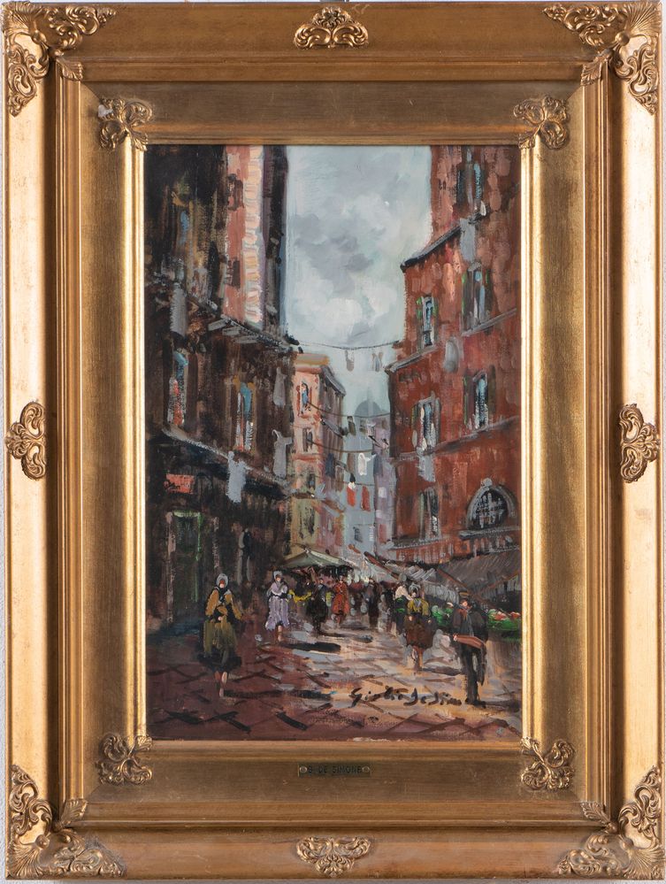 Lotto 400 | GIULIO DE SIMONE (Roccarainola 1939 – Padova 2020) "Parigi". Olio su tela. Cm...