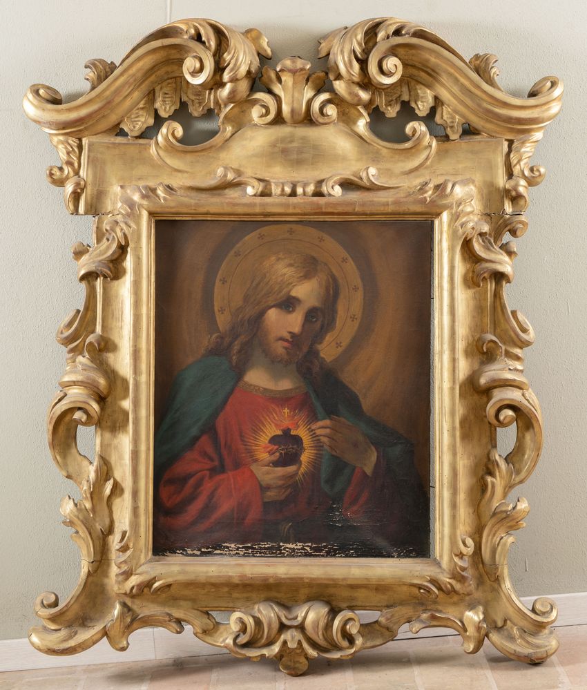 GIOVANNI PIANCASTELLI (Castel Bolognese 1845 – Bologna 1926) “Cristo”. Olio su tavola in importante cornice dorata del XVII secolo. Opera firmata al retro G. Piancastelli. Provenienza: collezione privata, Bologna.