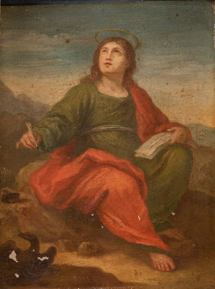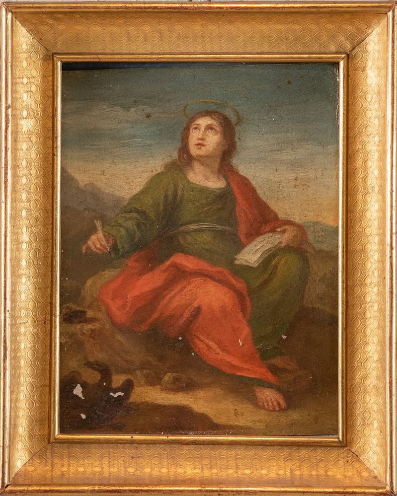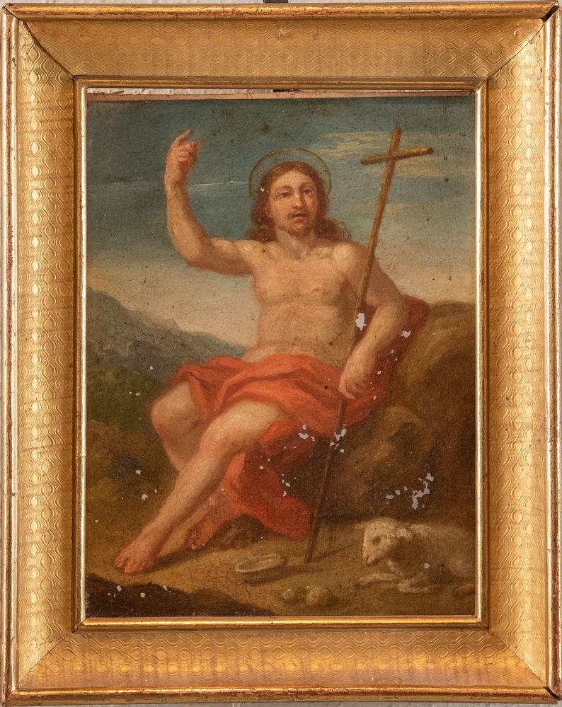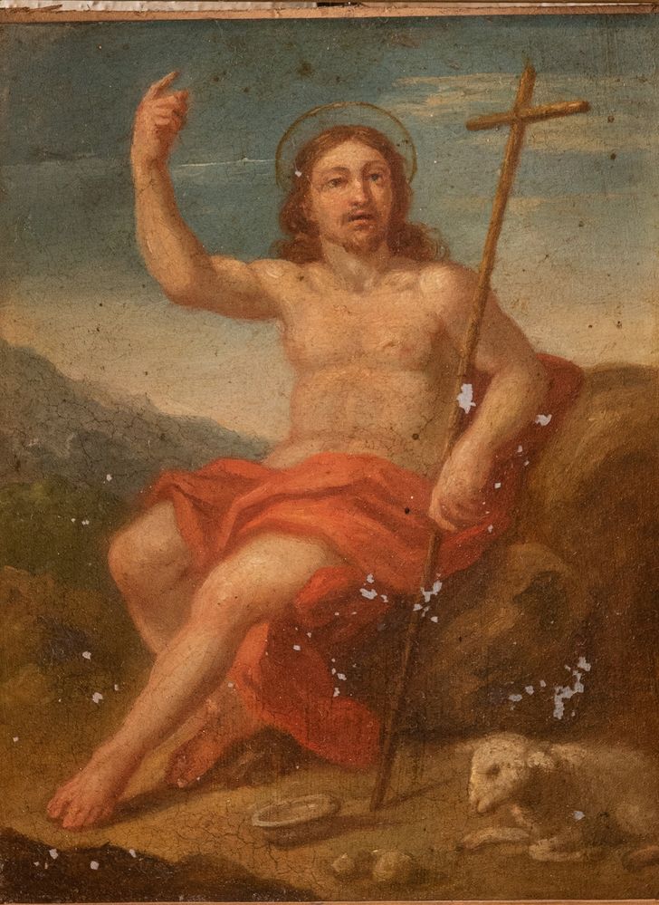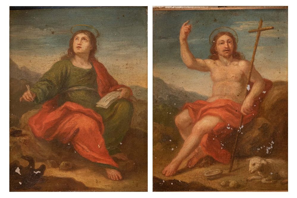 Maestro del XVIII secolo. “San Giovanni” e "San Giovanni Battista". Coppia di olio su metallo. Cadauno di cm 16x12,5.