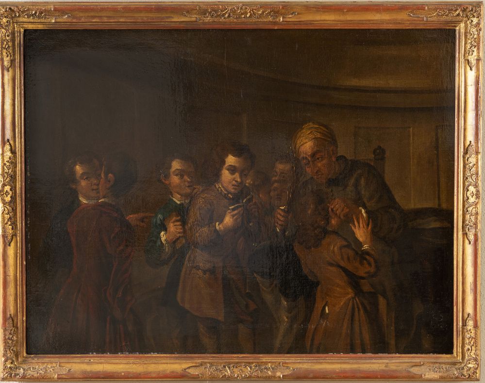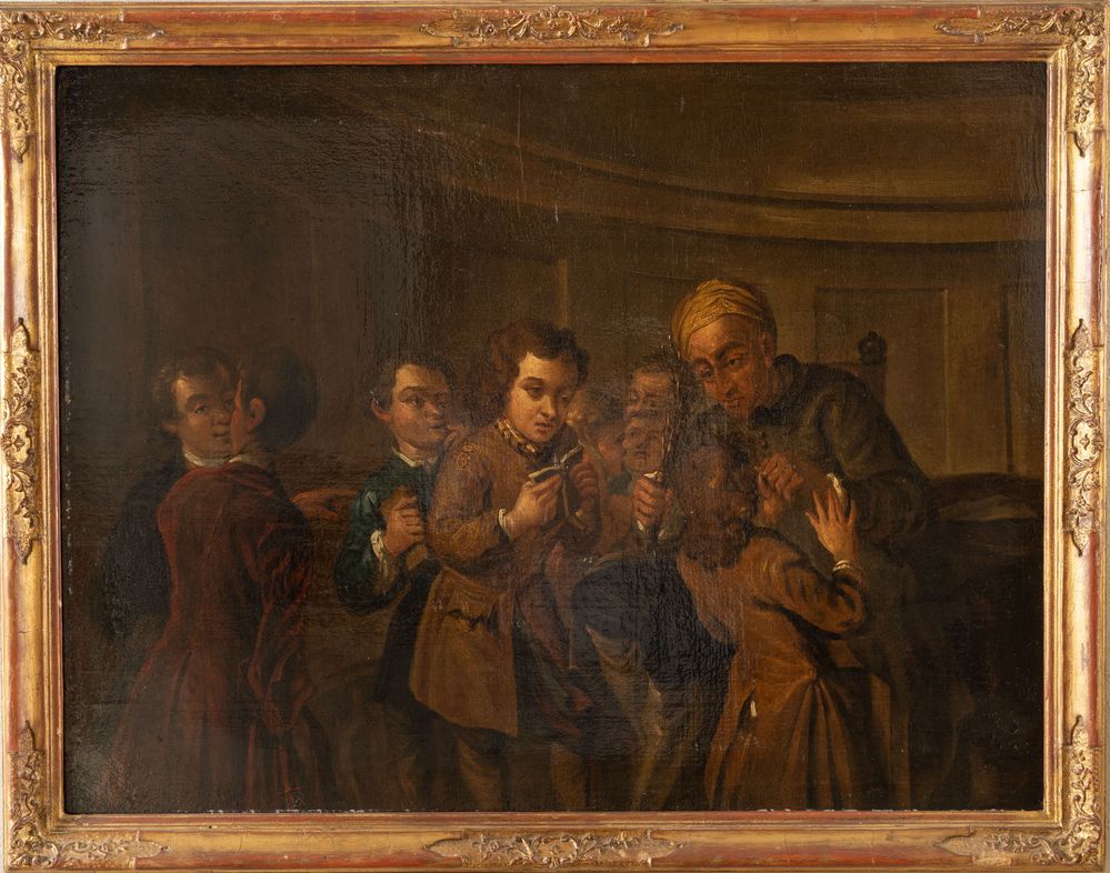 Maestro del XVIII secolo. "Scuola maschile". Olio su tela. Cm 70x90.