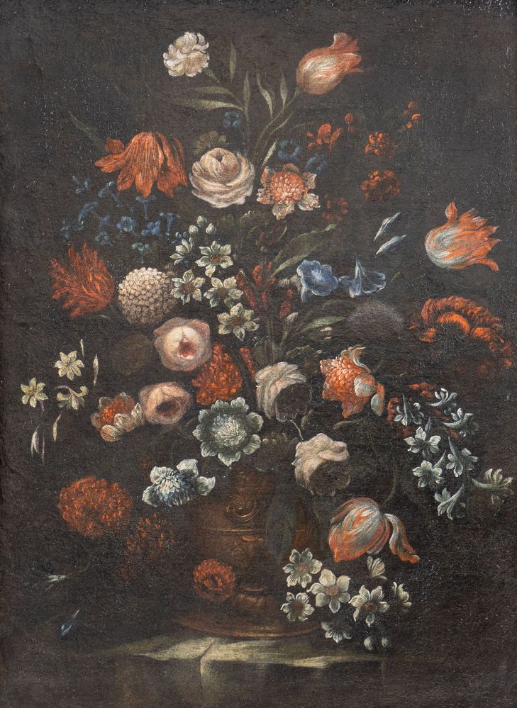 Maestro toscano del XVII secolo "Natura morta con fiori". Olio su tela. Cm...
