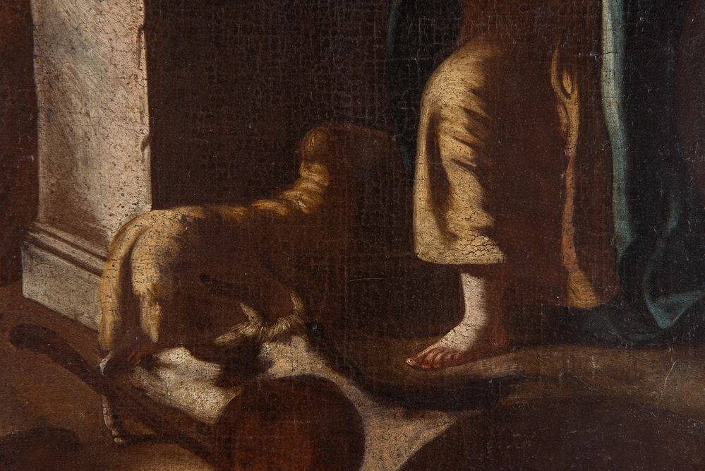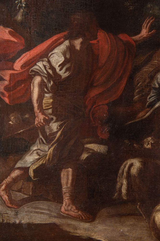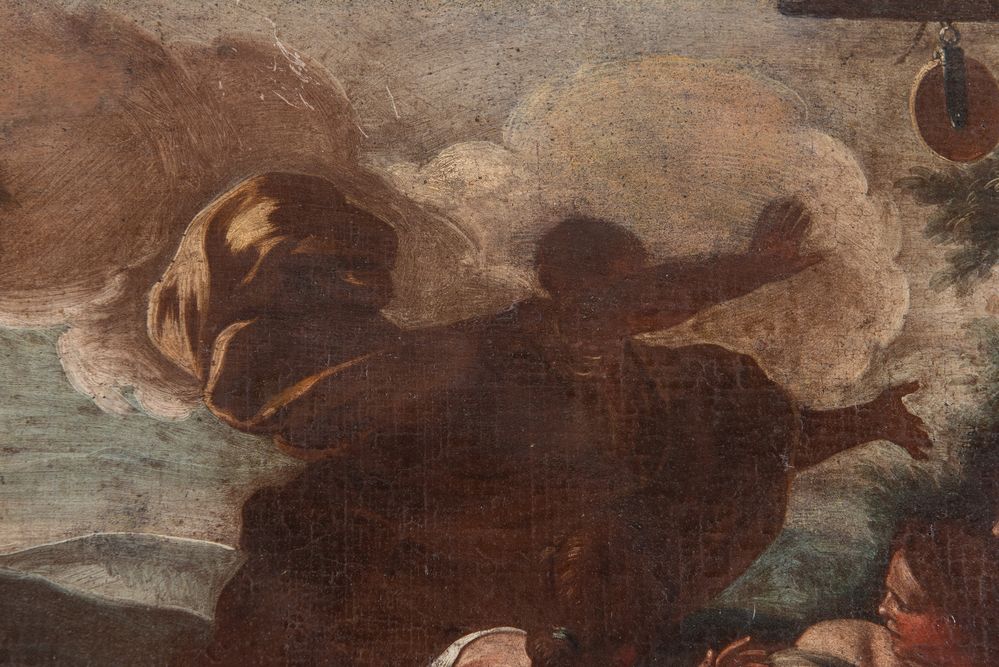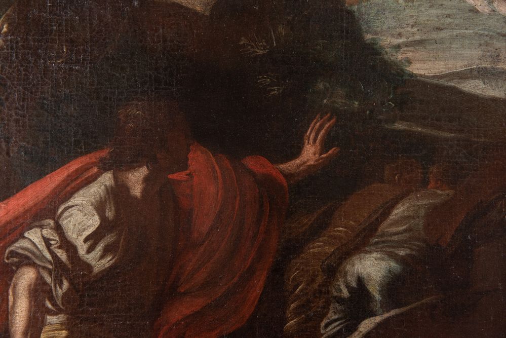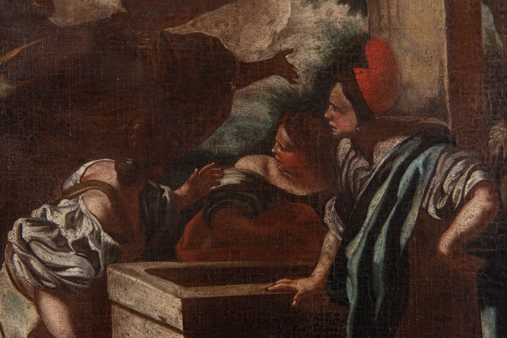 Maestro napoletano del XVIII secolo. "Rebecca al pozzo". Olio su tela. Cm 72,5x100,5.