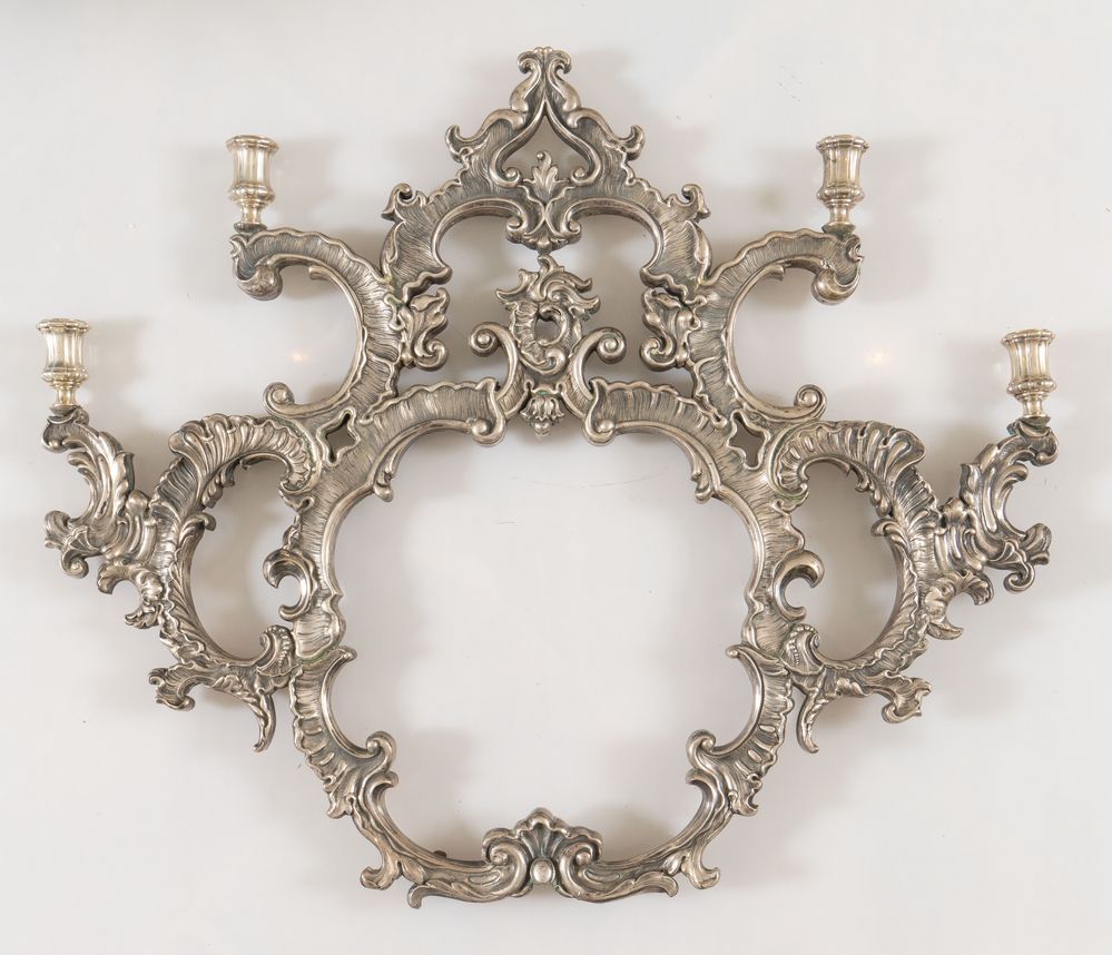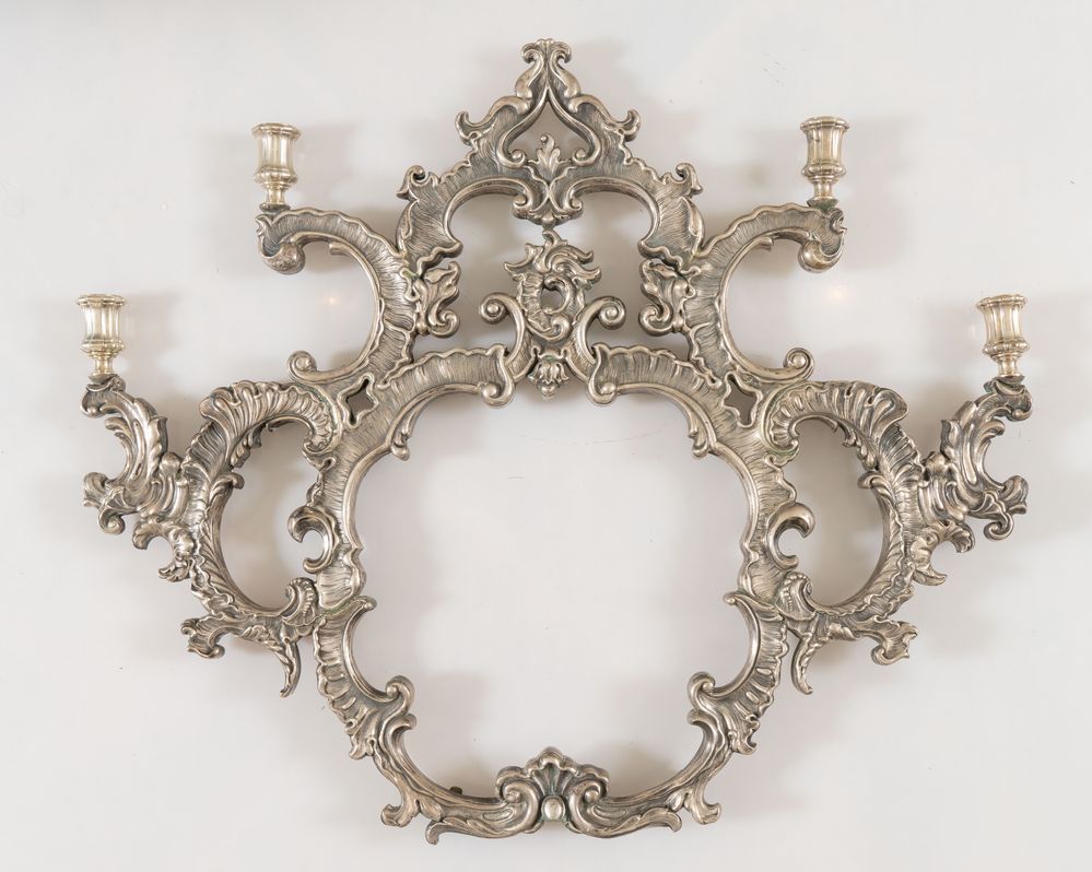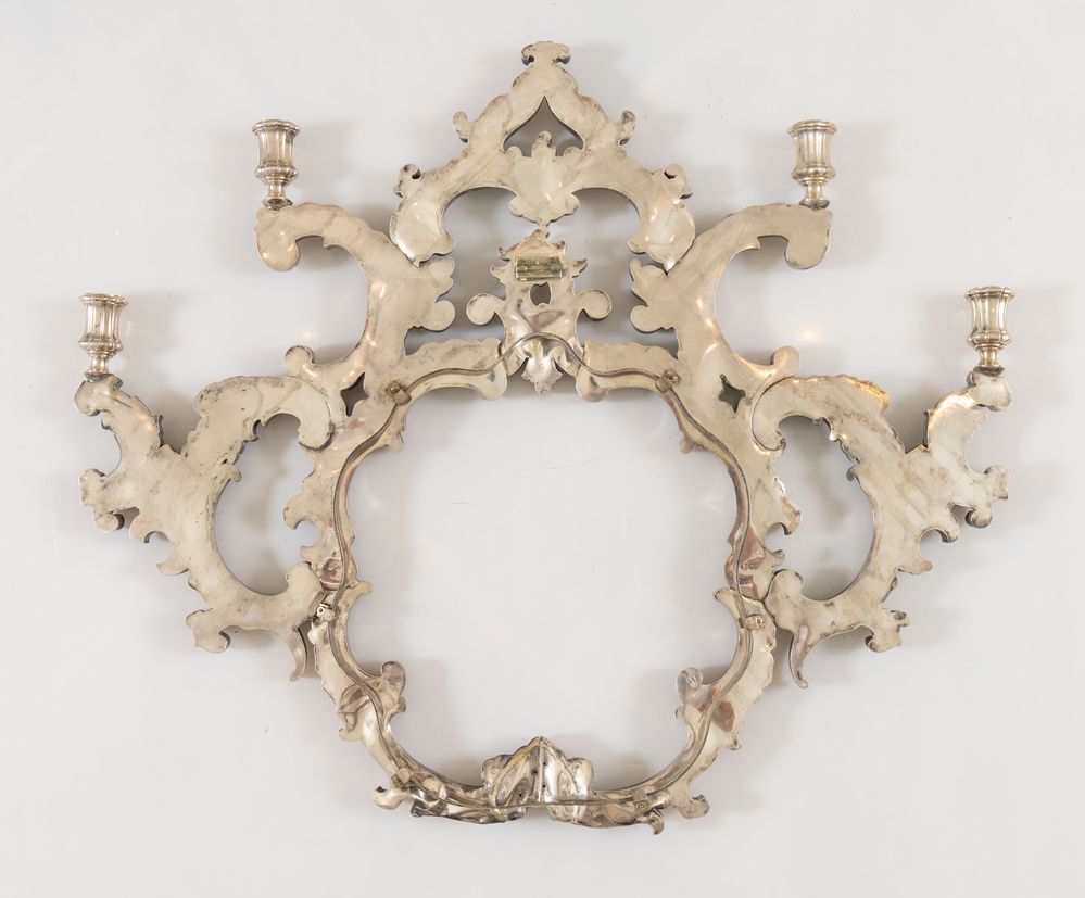 Austria-Germania, metà del XVIII secolo. Cornice in argento. Al retro reca punzone illegibile e segni di saggiatura antica. La partedi battuta posteriore e i ganci fermabattuta sono posteriori e in metallo argentato. Cm 59x68x3,5. Peso: kg 2,750.