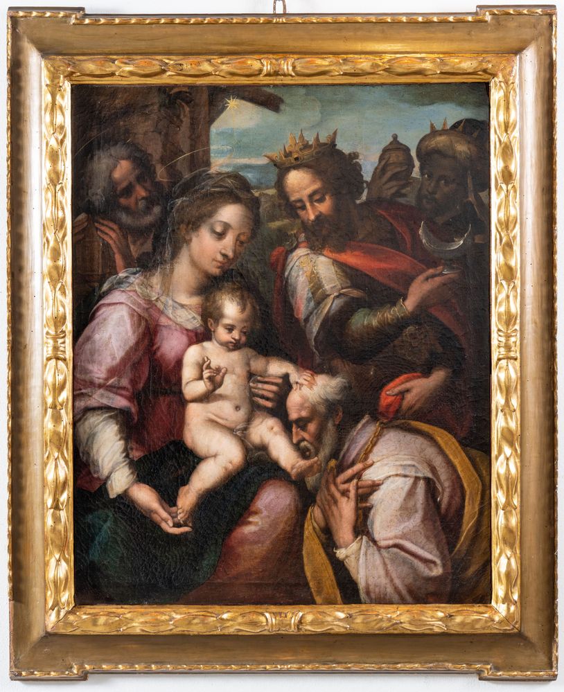 ALESSANDRO CASOLANI (Mensano 1552 – Siena 1607) "Sacra famiglia". Olio su tela. Cm 95x77.