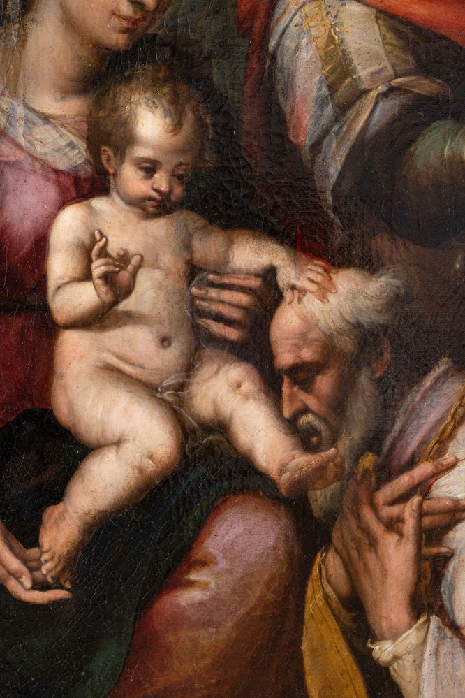 ALESSANDRO CASOLANI (Mensano 1552 – Siena 1607) "Sacra famiglia". Olio su...