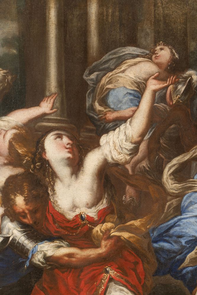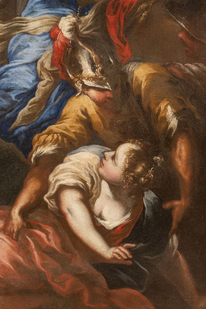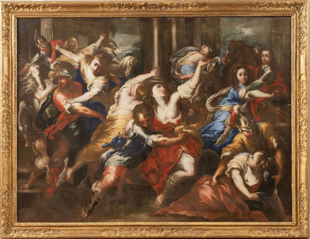 Bottega di Valerio Castello, XVII secolo. "Ratto delle sabine". Olio su tela. Cm 97x130. Provenienza: importante collezione privata italiana.