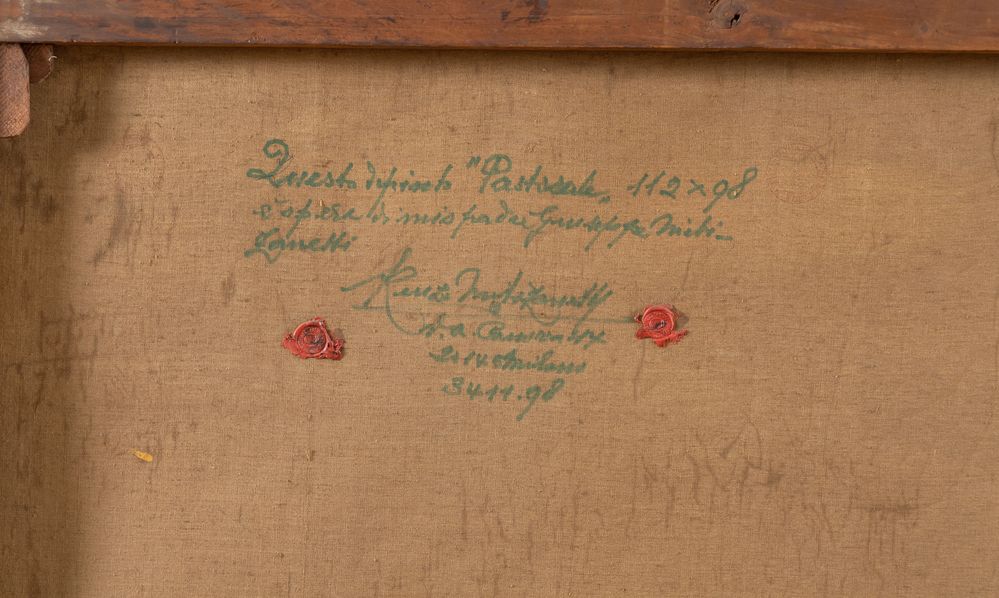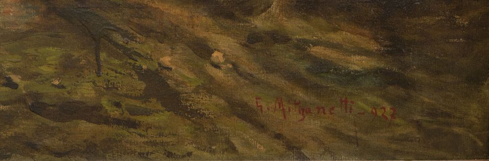 GIUSEPPE MITI ZANETTI (Modena 1860 - Milano 1929). "Paesaggio", 1927. Olio su tela. Cm 110x97. Opera firmata e datata in basso a destra G. Miti Zanetti 927. Al retro reca scritta per autentica del figlio Renzo Miti Zanetti.