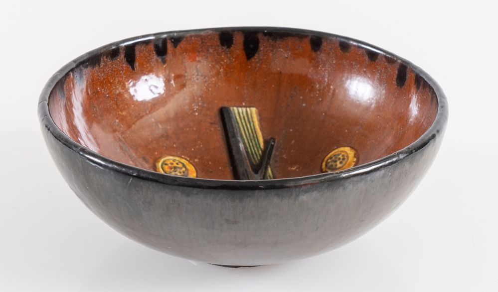 CARLO ZAULI (Faenza 1926 - 2002) Piatto in ceramica policroma smaltata. Cm 8x22. Opera firmata alla base Zauli Faenza.