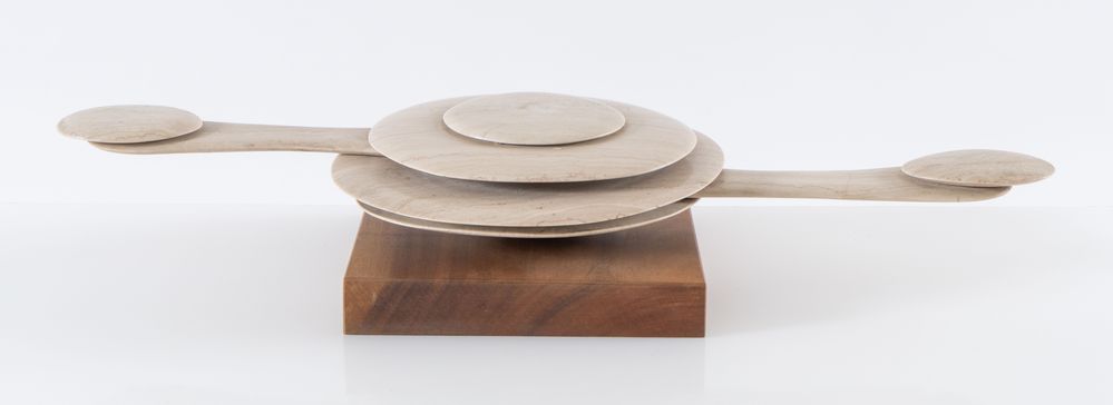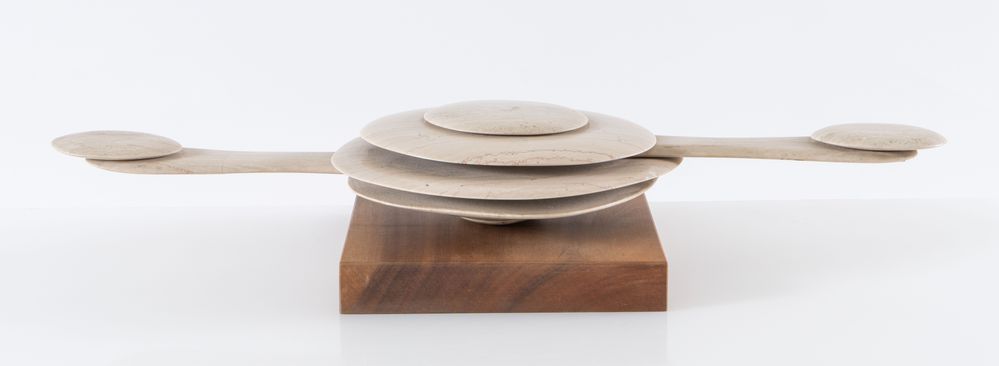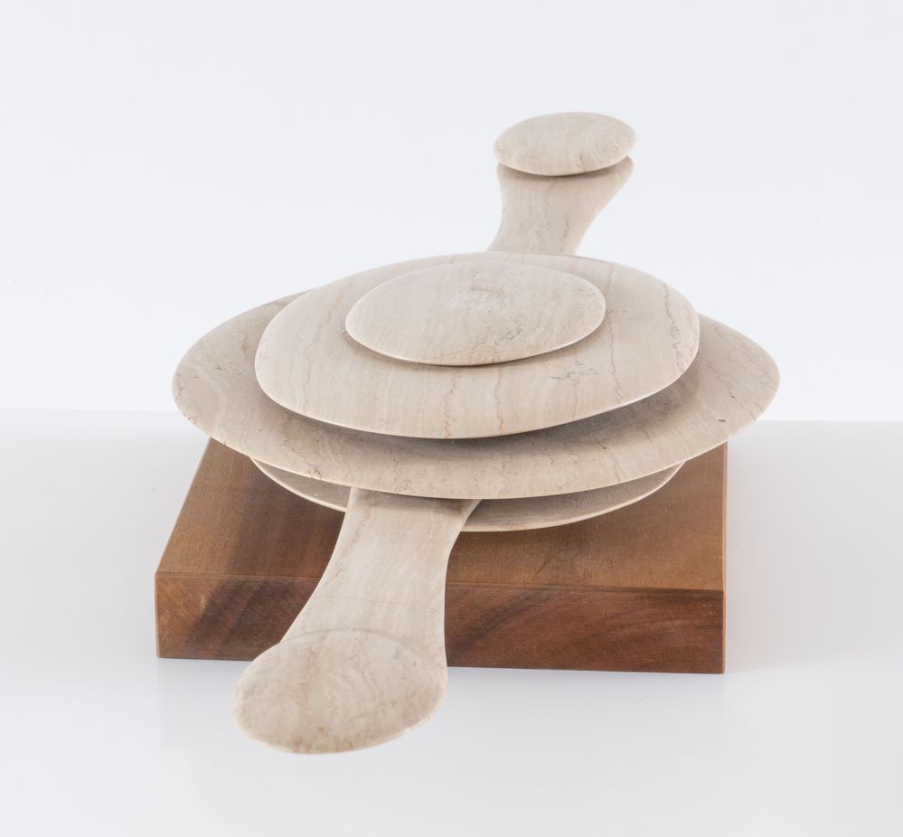 TATSUMI OKI (1948 - 2001) "Fossile". Scultura mobile in marmo. Cm 9x73x29. Esposizioni: Giappone oggi, La Casa dell'Arte, Sasso Marconi, 1975. Bibliografia: Giappone oggi, in Le Arti, n. 2 febbraio 1976, pag. 69.