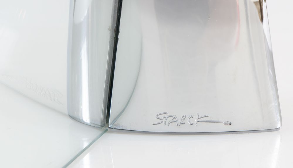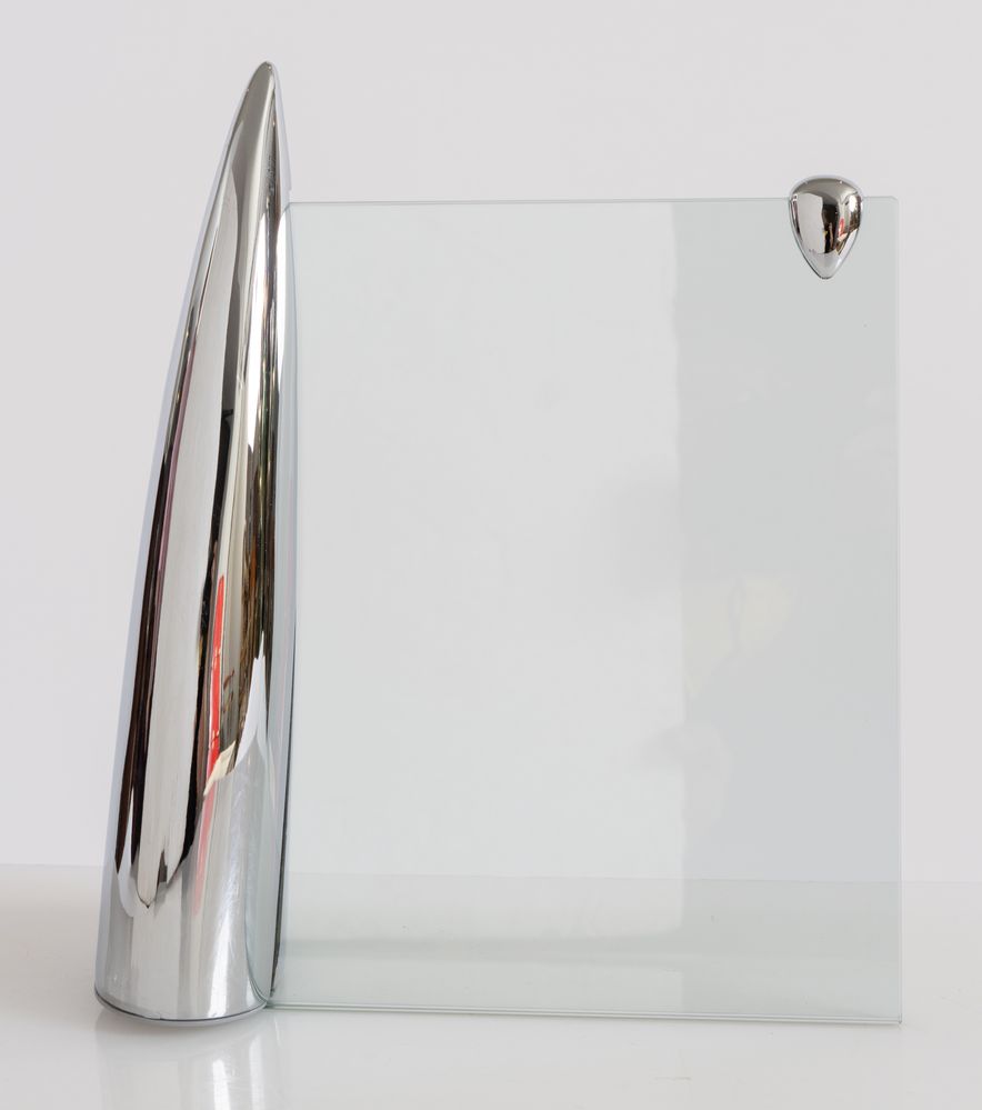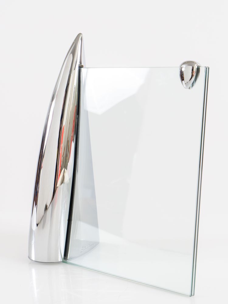 PHILIPPE STARCK Porta foto in alluminio e vetro modello 'Shark'. Marchio...