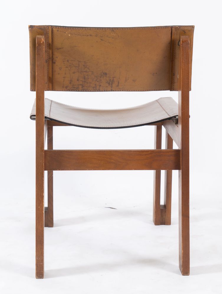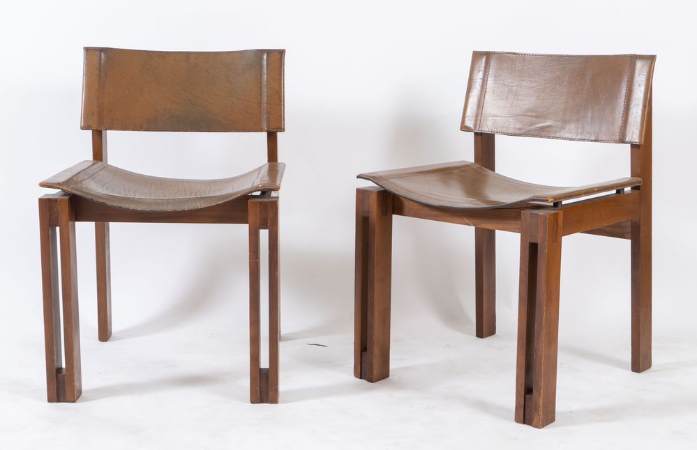 Coppia di sedie in legno con seduta e schienale in pelle. Prod. Italia, 1960...