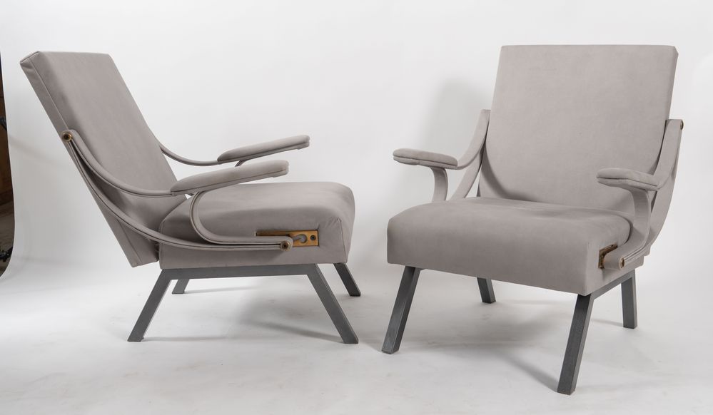 IGNAZIO GARDELLA Coppia di poltrone con struttura in metallo e rivestita in...