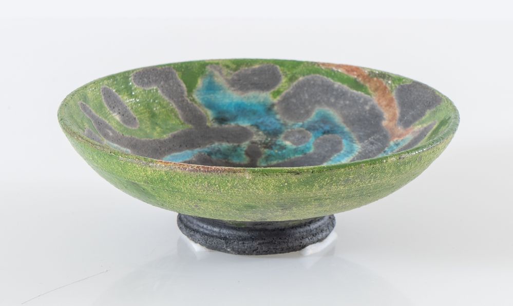 Lotto 547 | MIRTA CARROLI. Ciotola, 2012. Realizzata in ceramica racu sui toni del verde...