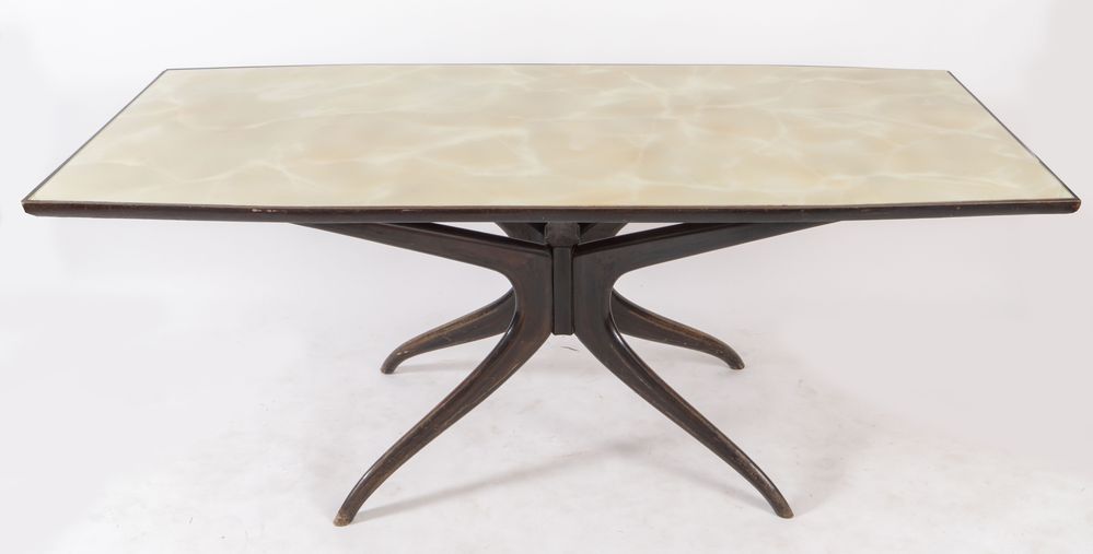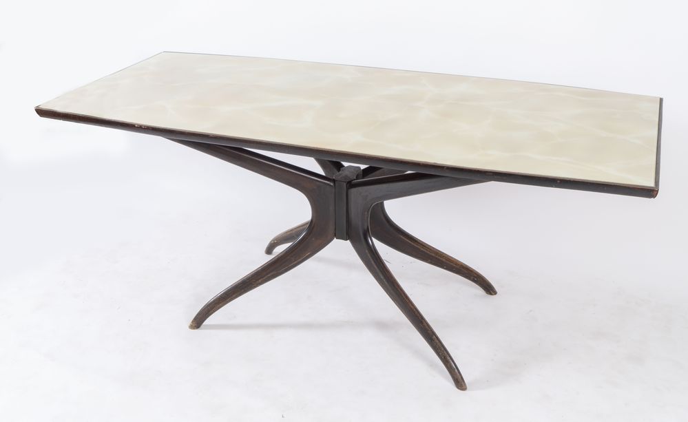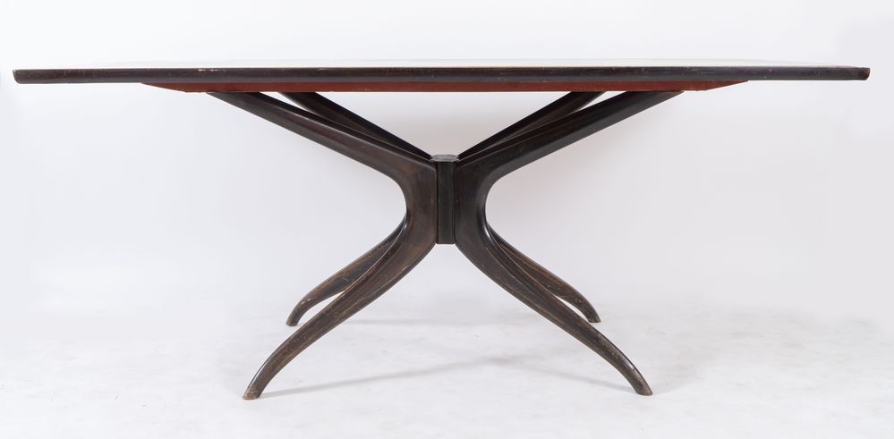 Tavolo da pranzo in legno. Prod. Italia, 1960 ca. Cm 75x82x180