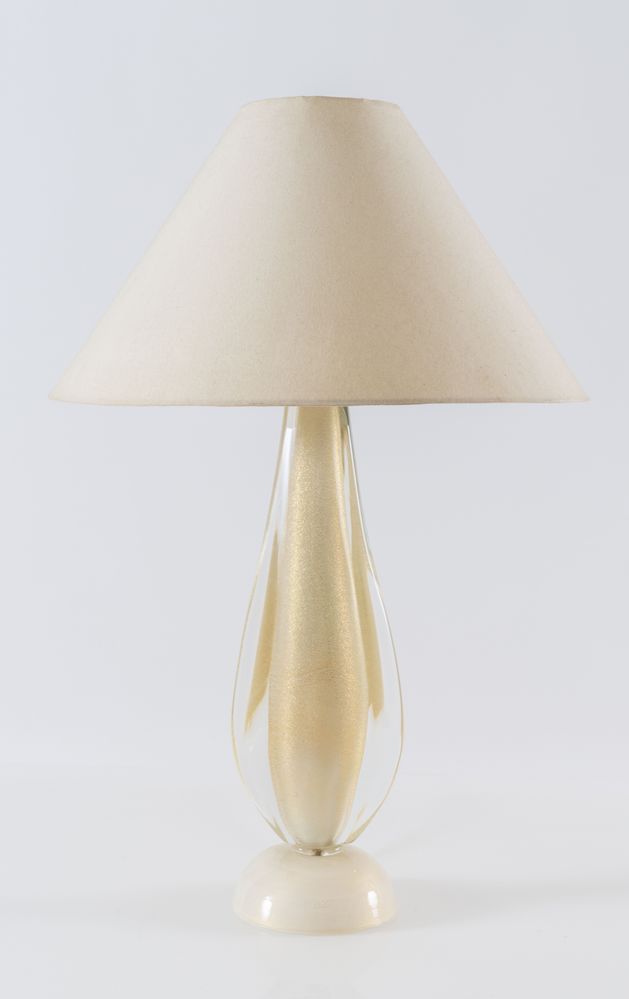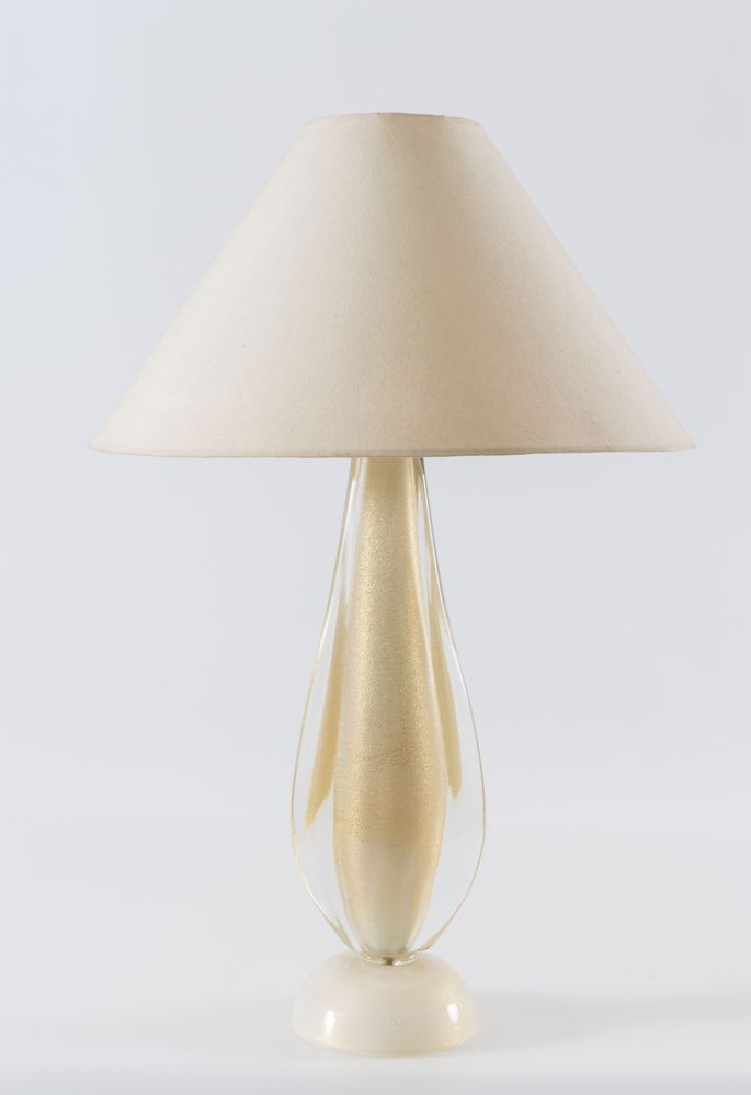 FLAVIO POLI (Attribuito) Lampada da tavolo in vetro soffiato con dettagli in...