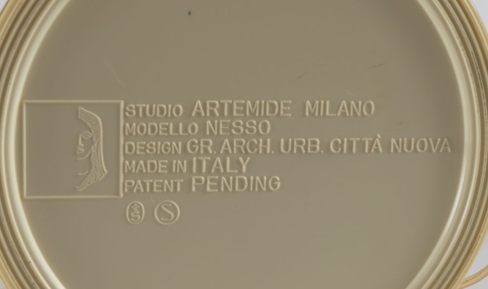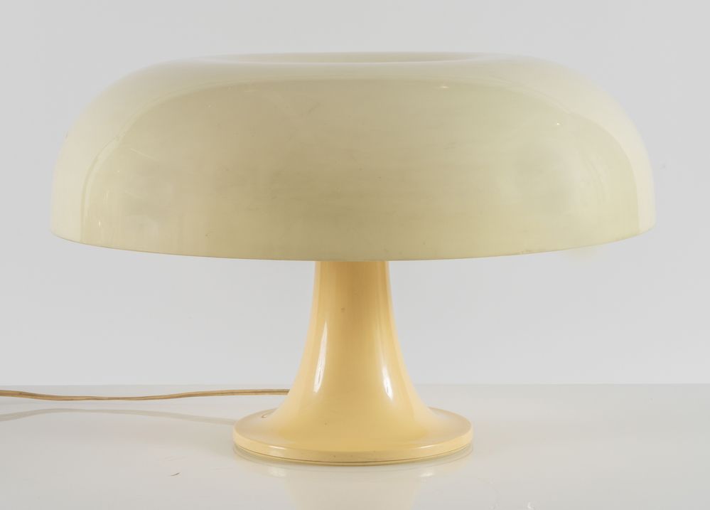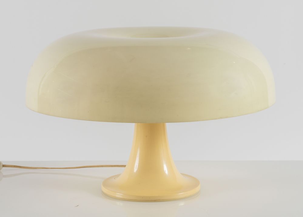 GIANCARLO MATTIOLI Lampada da tavolo in plastica ABS modello ’Nesso’. Marchio originale. Prod. Artemide, Italia, 1960 ca. cm 54x34. (difetti)