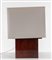 Lampada da tavolo in resina e metallo con paralume in tessuto e vetro. Prod....