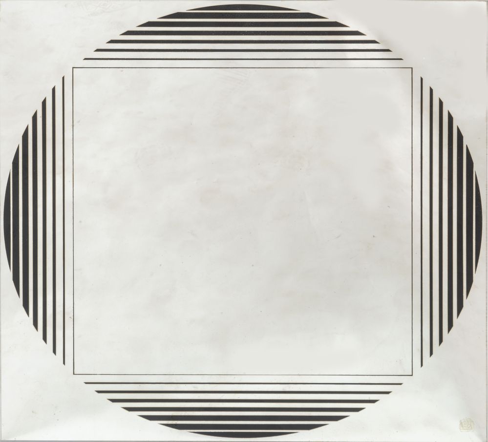 GIANNI CELADA Specchio in cristallo specchiato e legno verniciato modello 'Brama'. Prod. Fontana Arte, Italia, 1970 ca. Cm 71x71x4 Bibliografia: Fontana Arte, una storia stupenda; L. Falconi, Milano 1998, pag. 219