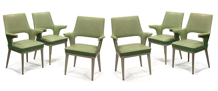 POLTRONE Sei poltroncine con struttura in scatolare metallico e rivestimento...