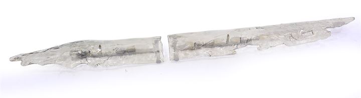 Grande applique composta da due elementi a tegola in vetro di Murano trasparente colato.