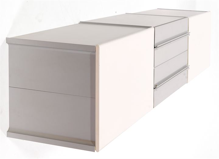 Mobili contenitori pensili componibili in lega d'alluminio.