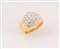 Anello in oro giallo e bianco 18k sormontato da pavè di diamanti di forma...