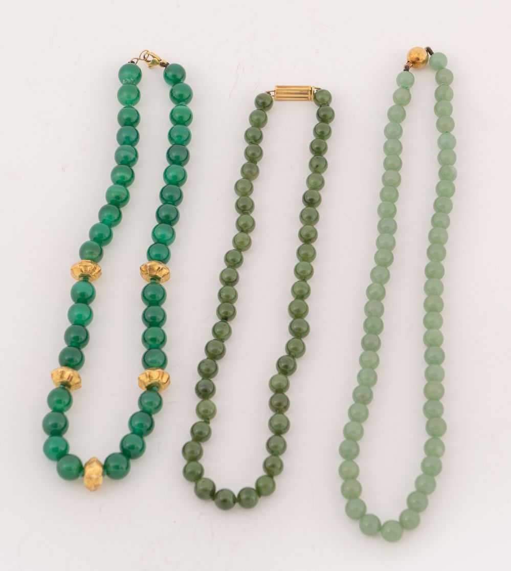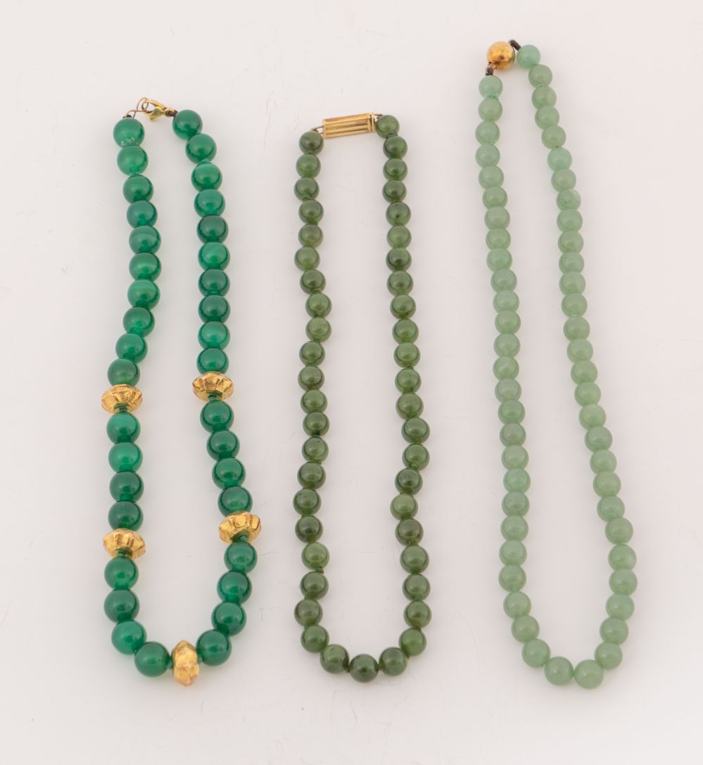 Lotto 12 | Tre fili di avventurina e agata verde a sfere tonde.