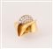 Anello in oro giallo e bianco 18k realizzato a nastro incrociato decorato da zirconi. Peso complessivo 14 gr.