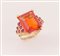 Anello in oro giallo 18k centrato da grande pietra sintetica rossa. Peso...