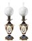 Coppia di lumi a petrolio in porcellana e bronzo, Fine XIX Secolo