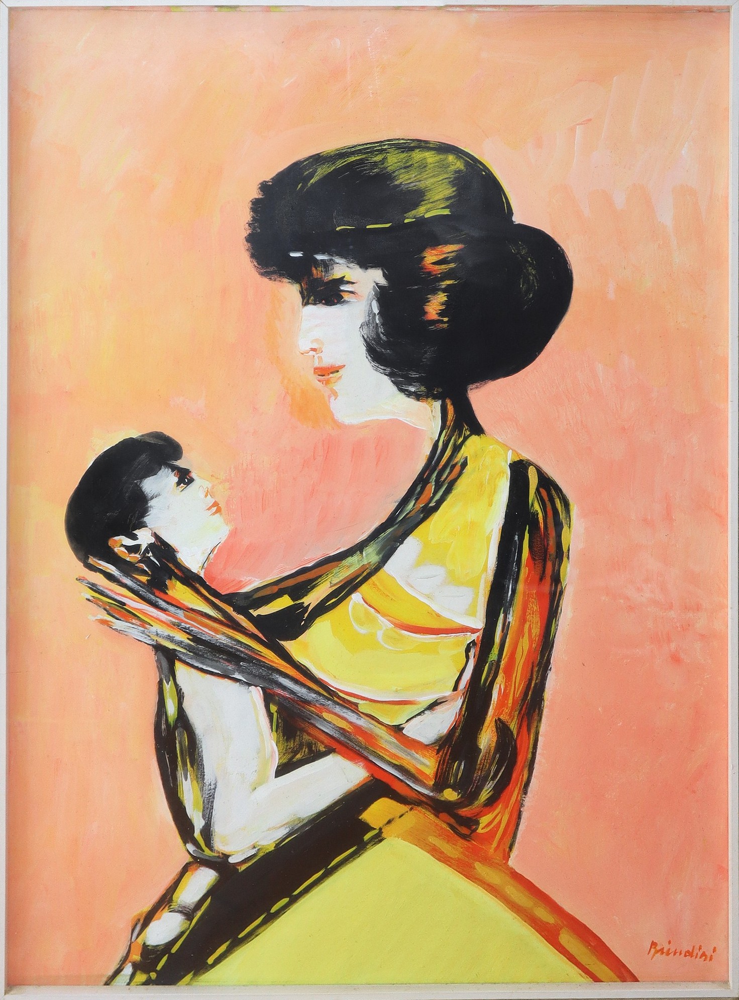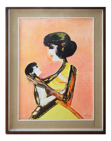Remo Brindisi (Roma 1918-Lido di Spina 1996) - Maternità cm 60 x cm 50, in cornice cm 84 x cm 64 Olio su tela Firmato in basso a destra.