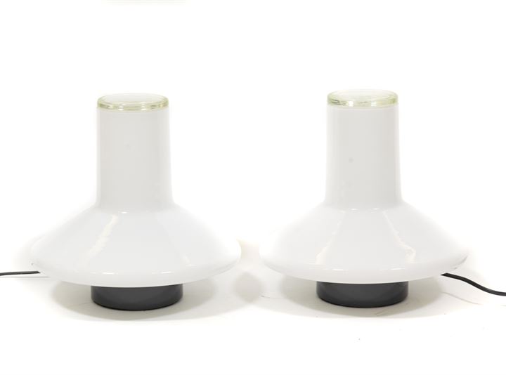 PAMIO ROBERTO Coro Coppia di lampade da tavolo in vetro bianco e decorazione...